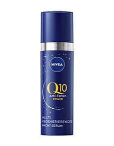 Einen sichtbaren Anti-Falten-Effekt über Nacht bietet das NIVEA Q10 Anti-Falten Power Multi Regenerierendes Nacht Serum. Es sorgt für sichtbar straffere Haut schon am nächsten Morgen. Die entspannende Duftkomposition beruhigt die Sinne und bereitet die Haut auf einen erholsamen Schlaf vor. Die Formel des Nachtserums mit purem Koenzym Q10 in 2-facher Konzentration1 und Provitamin B5, fördert den nächtlichen Erneuerungs- & Regenerationsprozess der Haut und mildert auch tiefere Falten.